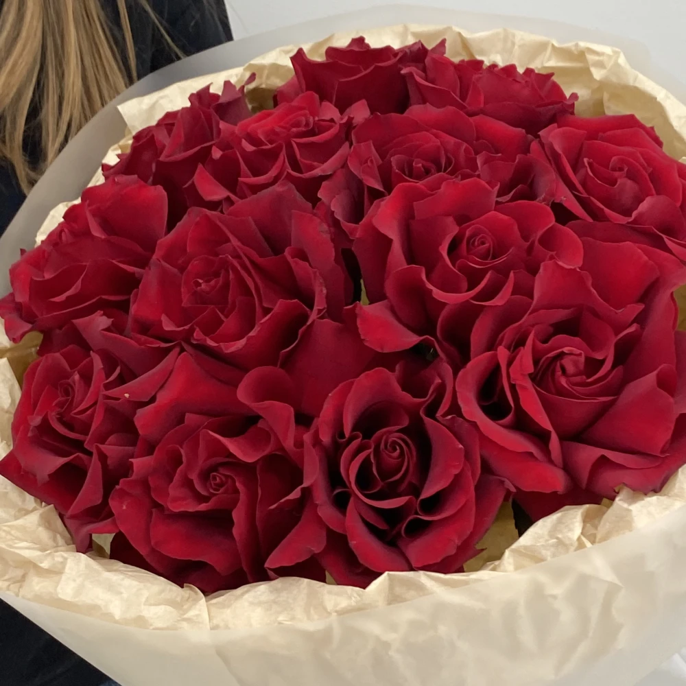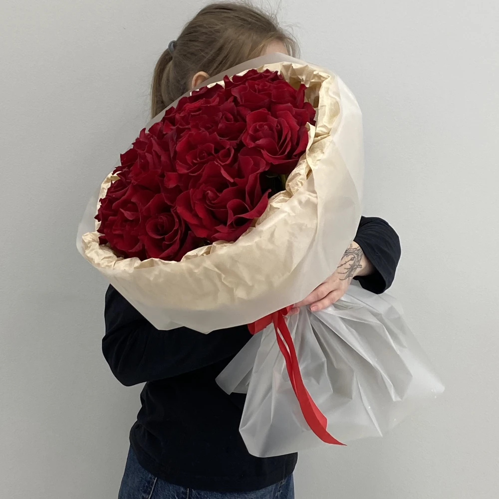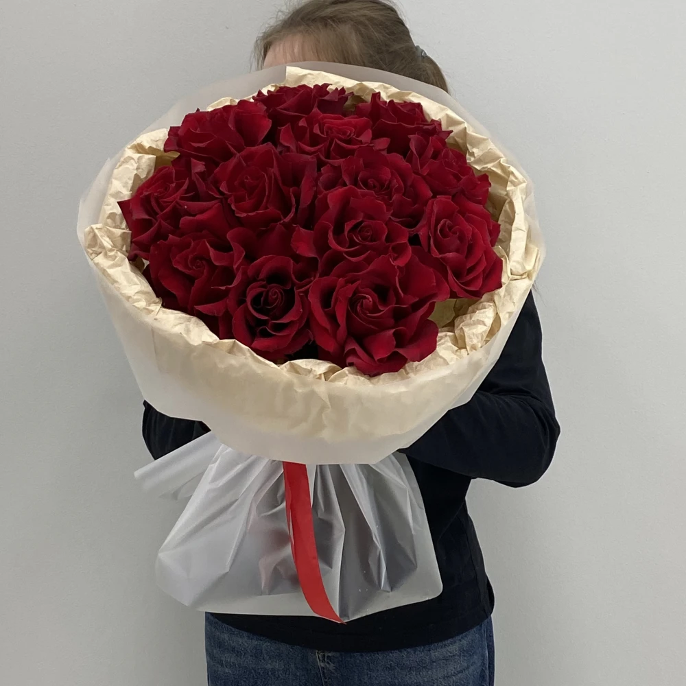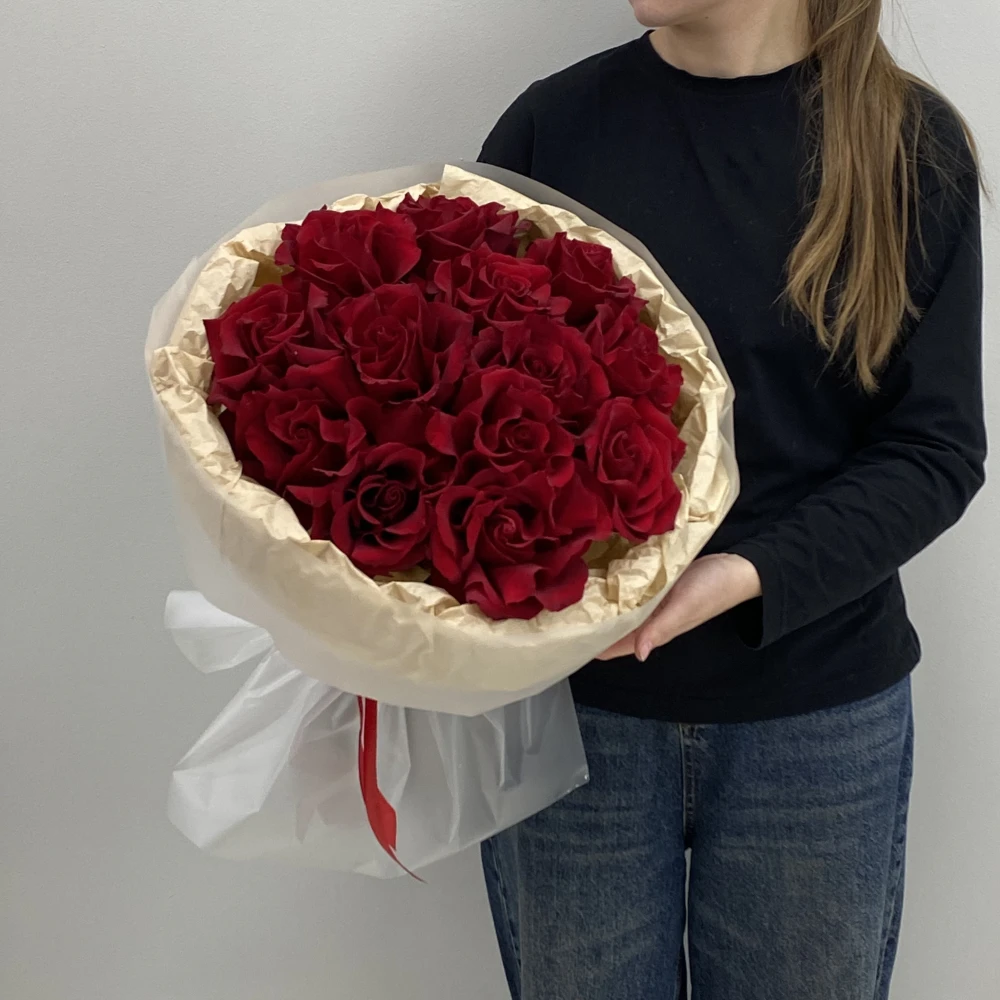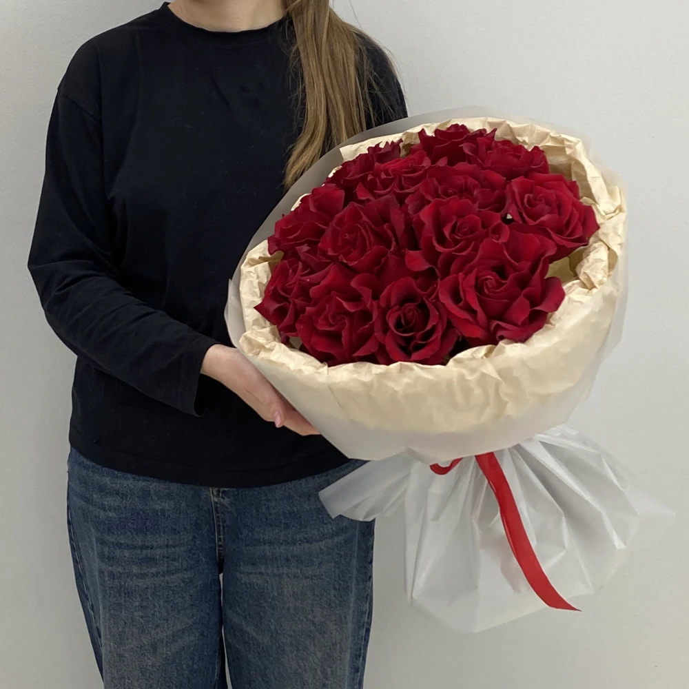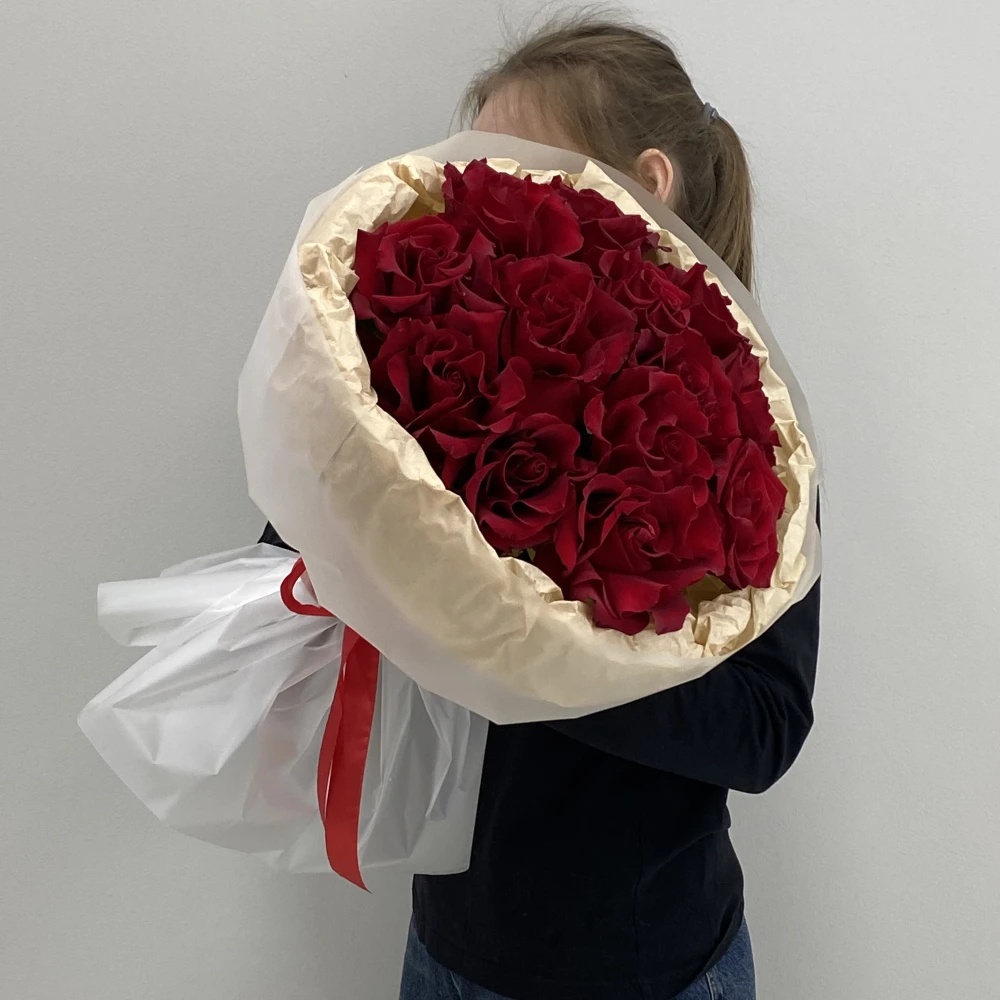 Купить цветы оптом Букет с красными французскими розами Эксплорер (9шт)