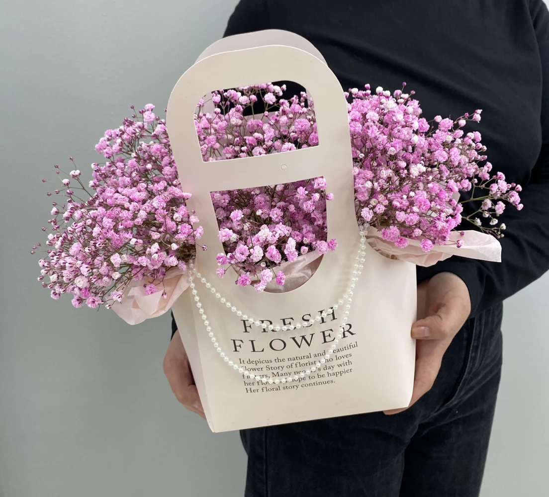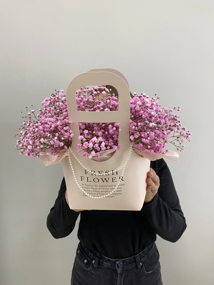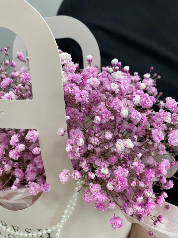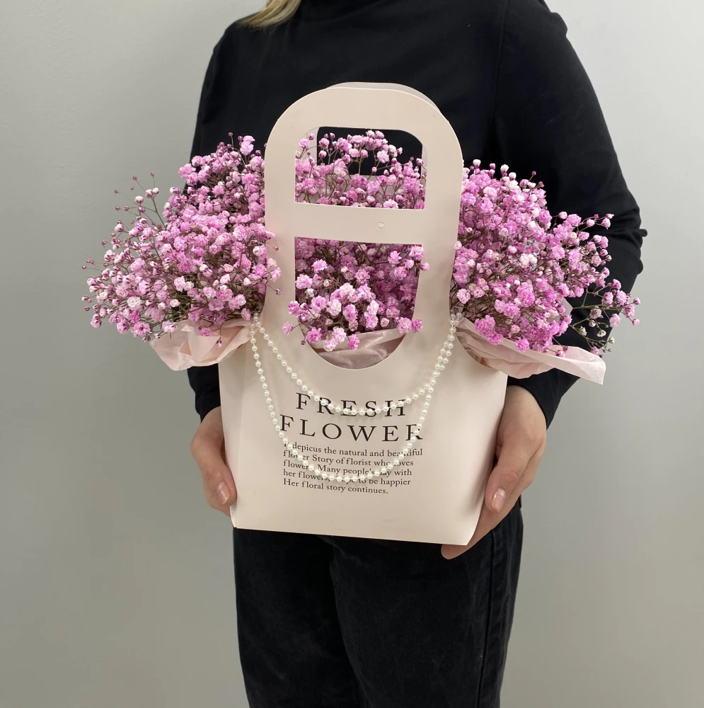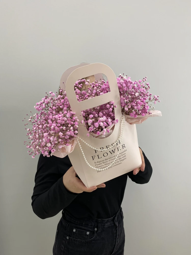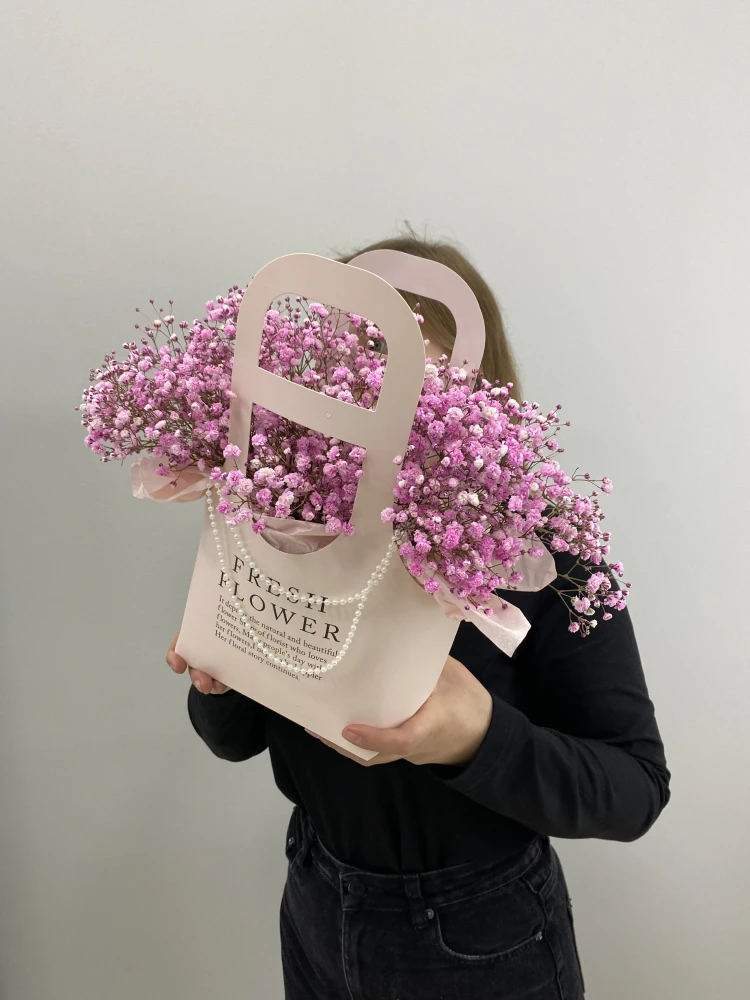 Купить цветы оптом Композиция из розовой гипсофилы в сумке