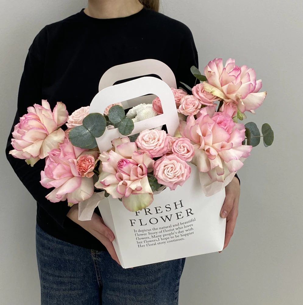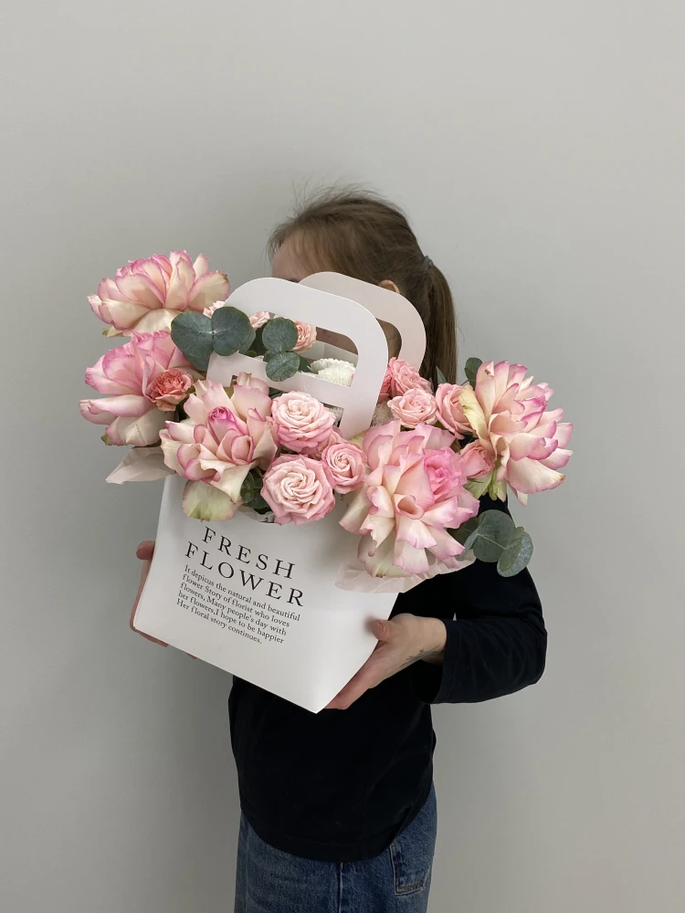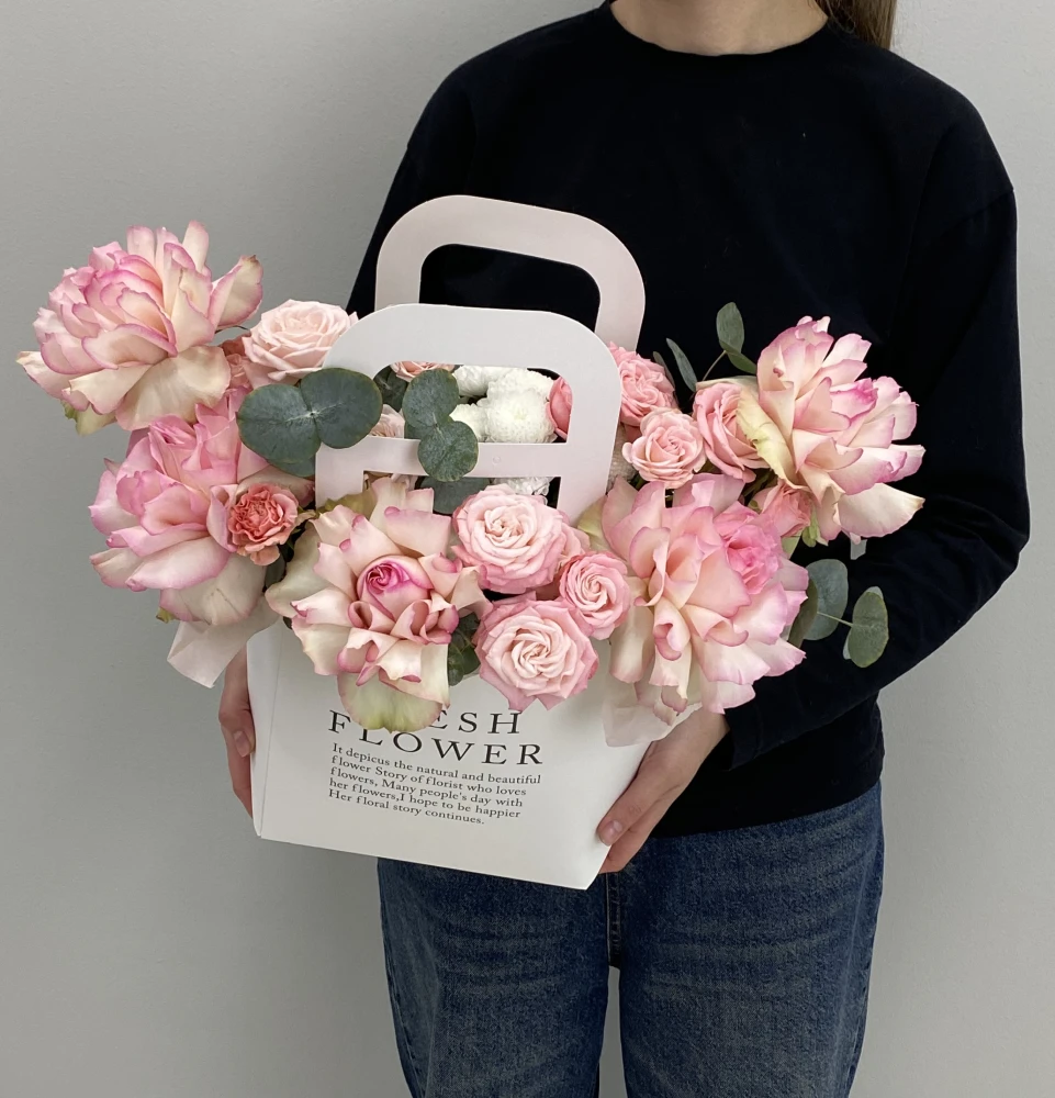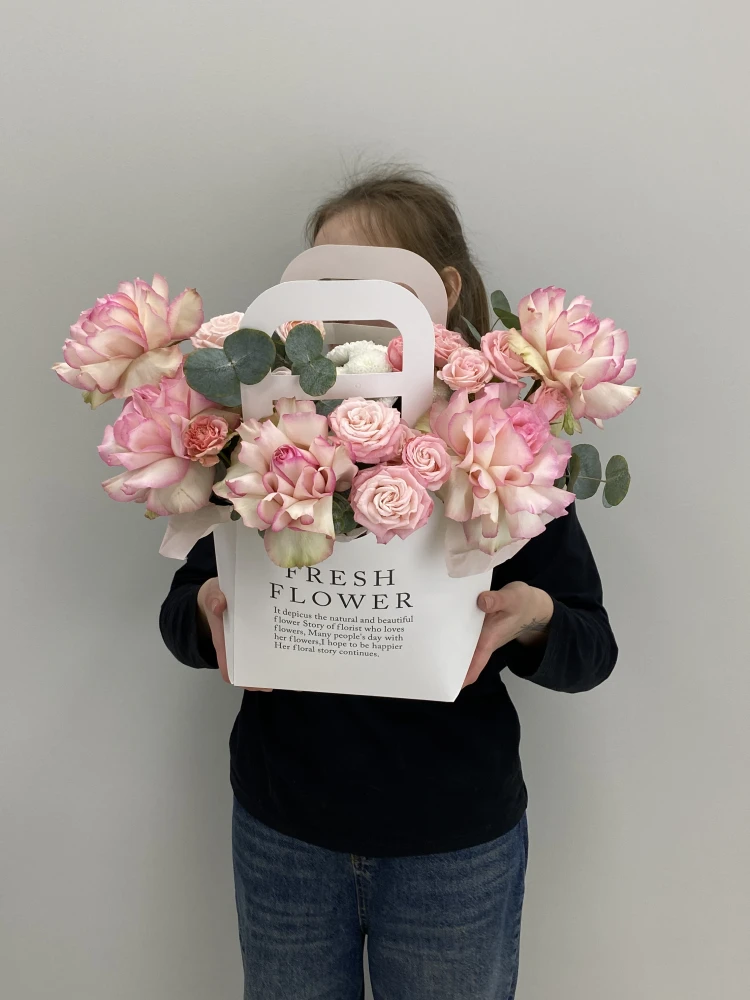 Купить цветы оптом Композиция в сумке «Розовая Акварель»