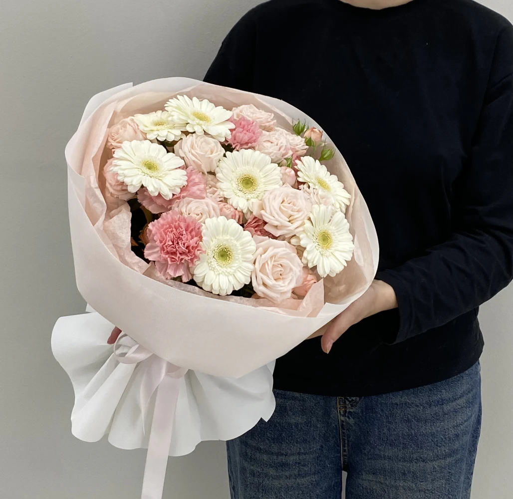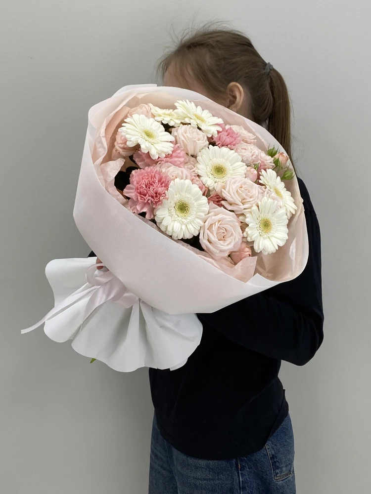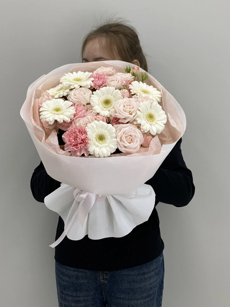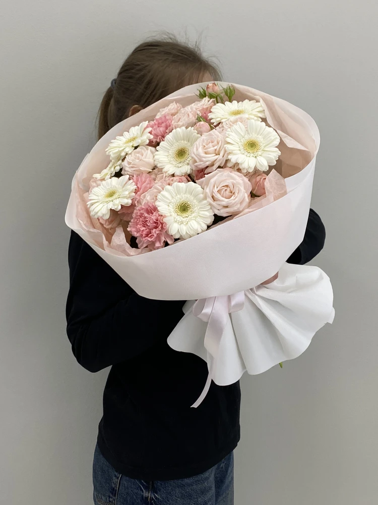 Купить цветы оптом Сборный букет с герберами и кустовыми пионовидными розами